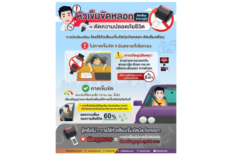 "กรมการขนส่งทางบก" เตือนไม่คาดเข็มขัดนิรภัยและใช้อุปกรณ์หลอกว่าใส่เข็มขัดขณะขับรถ อันตรายมาก