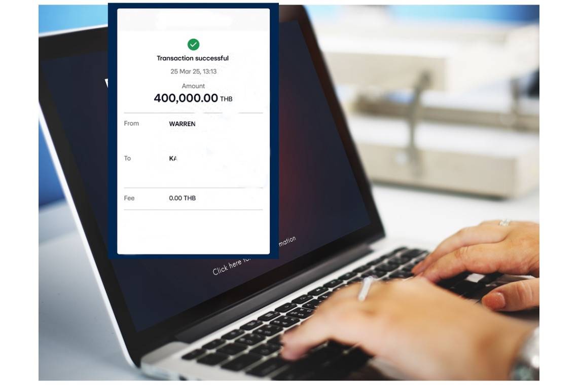 ดูตัวอย่างด้านล่างได้ครับ ต้นฉบับยอดเงิน 23,000 บาท ผมโอนจากตัวเองไปบัญชีตัวเองนี่แหละ แต่ผมให้ ChatGPT แก้เป็นปู่บุฟเฟ่ต์โอนเงินหาผม 400,000 บาทแทน แก้พวกเลขอ้างอิงด้วย