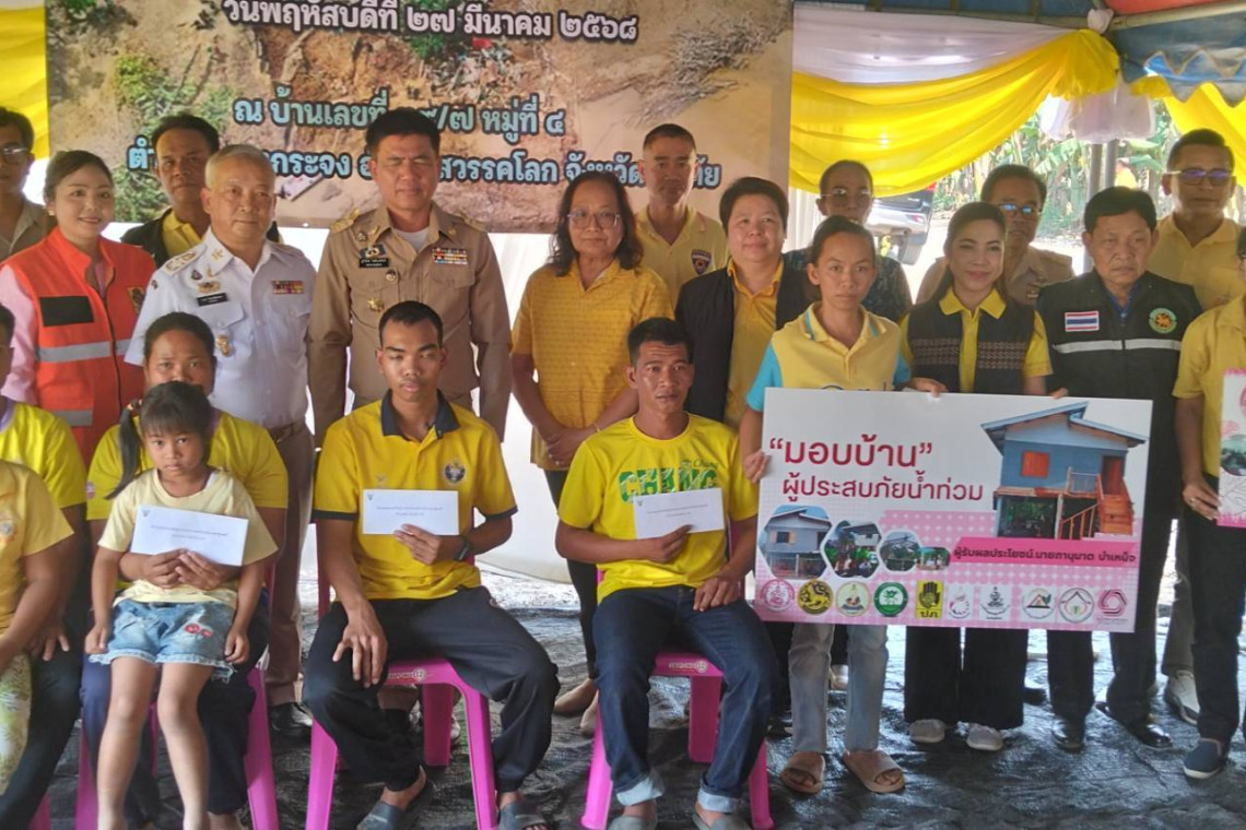 และมอบบ้านผู้ประสบภัยทั้ง2หลัง หลังที่1.นางสาว เอมิกา ค้าไม้ 2.นาย ภานุมาศ บำเหน็จ โดยทั้งนี้ได้มีหลายหน่วยงานในจังหวัดสุโขทัยทั้งหน่วยงานท้องที่ ท้องถิ่นองค์กร ปภ. พช.พม. กาชาดก็ได้ร่วมมือกันเข้าช่วยเหลือและเข้าร่วมพิธีมอบบ้านในครั้งนี้ด้วย