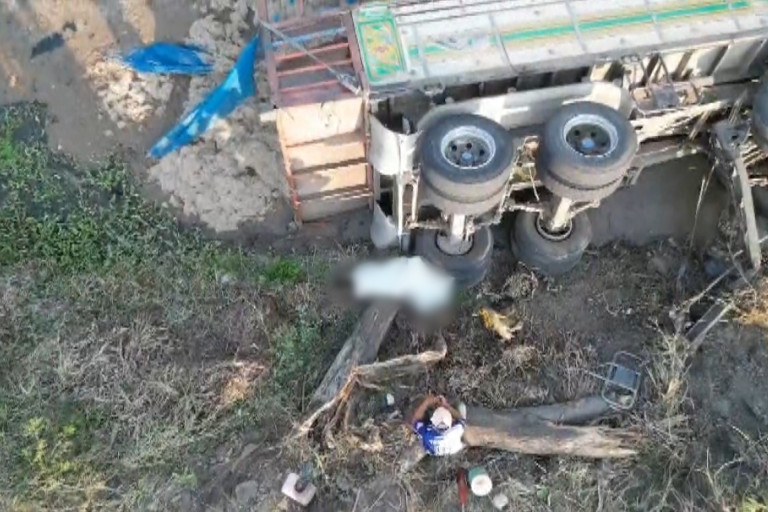 สุพรรณบุรี สาวโบกรถทำทางดวงกุดโดนรถพ่วงชนอัดลงคลองดับอนาถ