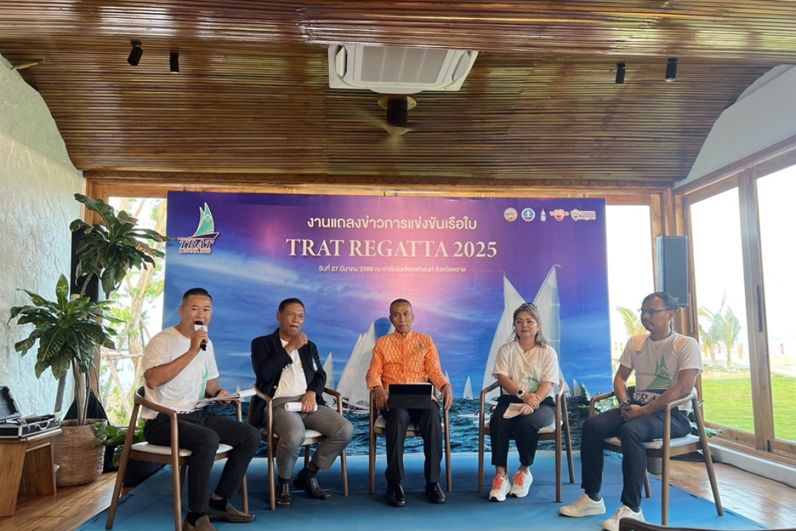 จ.ตราด เวลา 17.00 น.วันที่ 27 มีนาคม 2568 ที่ท่าเรือโอเชียนฟรอนท์ ต.อ่าวใหญ่ จ.ตราด นายณัฐพงษ์ สงวนจิตร ผู้ว่าราชการจังหวัดตราด เป็นประธานในการแถลงข่าวการแข่งขันเรือใบ Trat Regatta 2025” ที่จะแข่งขันระหว่างวันที่ 9-11 พฤษภาคม 2568 ณ บริเวณปากน้ำตราดหน้าท่าเรือโอเชี่ยนฟรอนท์ มีนางสาวจุฑามาศ กุลรัตน์ ผู้อำนวยการสำนักงานท่องเที่ยวและกีฬาจังหวัดตราด พลเรือเอกอารักษ์ แก้วเอี่ยม ที่ปรึกษาสมาคมกีฬาแข่งเรือใบแห่งประเทศไทย ในพระบรมราชูปถัมภ์ และนายณัฐดร หัสวาที รองผู้อำนวยการสำนักงานการท่องเที่ยวแห่งประเทศไทย (ททท.) สำนักงานตราด ร่วม