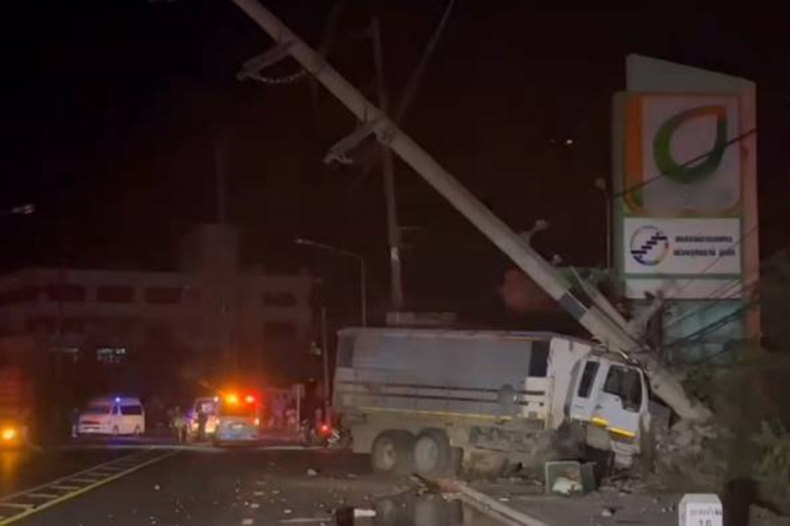 อุทัยธานี สิบล้อชนเสาไฟฟ้า ทำไฟดับทั้งจังหวัด