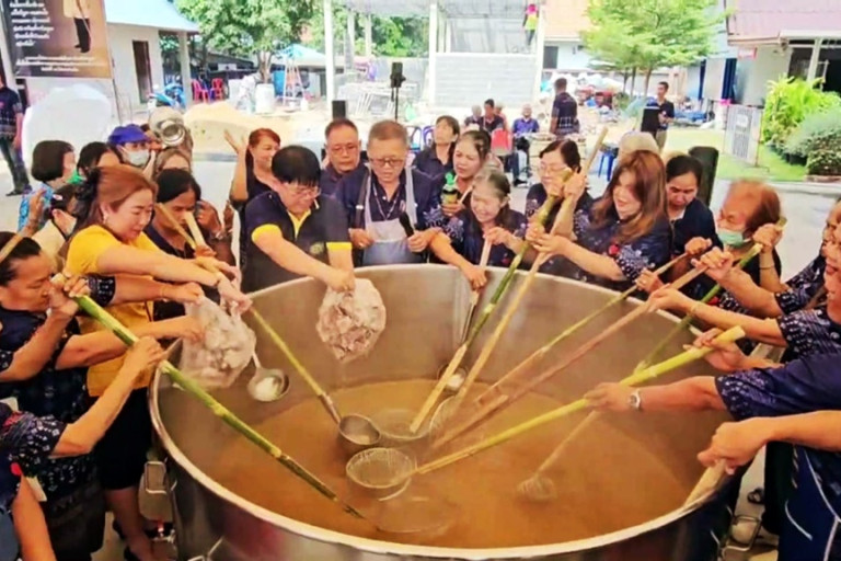 ด้านนายทวีศักดิ์ อยู่ถาวร นายก อบต.บัวลอย กล่าวว่า วันเป็นอีกวันหนึ่งในการจัดกิจกรรมนักเรียนผู้สูงอายุ ตำบลบัวลอย ในเรื่องของอาหารหลัก 5 หมู่ วันนี้มาทำ ชาบู หม้อที่ใหญ่ที่สุดในประเทศไทย ซึ่งนักเรียนในโครงการโรงเรียนผู้สูงอายุ ได้นำพืชผักของแต่ละบ้านมา โดยการนำมาปรุงแต่งร่วมกันโดยการมากิน ชาบู ด้วยกัน ซึ่งถือว่าเป็นหนึ่งหลักสูตรของนักเรียนโรงเรียนผู้สูงอายุ ซึ่งหม้อที่ใช้ปรุงชาบูมีความกว้างถึง 1.80 เมตร และสูง 80 เซนติเมตร ซึ่งใส่ไก่ไปเป็นตัวไก่ยังหายไปเลย จึงถือว่าวันนี้มาทานอาหารหลัก 5 หมู่ร่วมกันของนักเรียนโรงเรียนผู้สูงอายุ ต.บัวลอย ซึ่งถือว่าเป็นหนึ่งกิจกรรมก่อนที่จะรับใบปริญญา