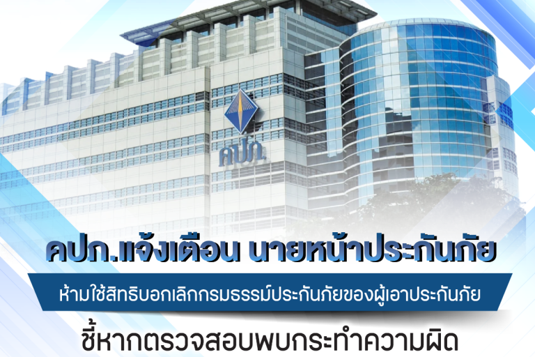คปภ. แจ้งเตือนนายหน้าประกันภัย ห้ามใช้สิทธิบอกเลิกกรมธรรม์ประกันภัยของผู้เอาประกันภัย