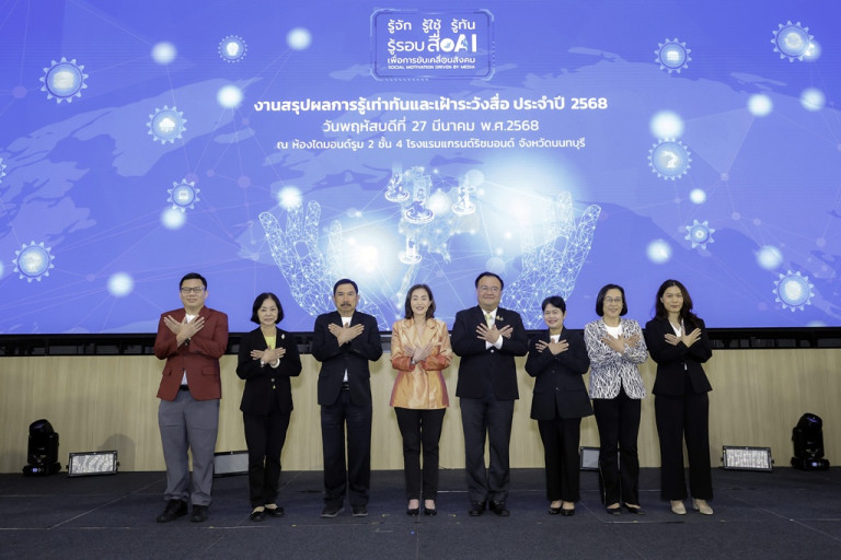 เมื่อวันที่ 27 มี.ค.68 กองทุนพัฒนาสื่อปลอดภัยและสร้างสรรค์ จัดงานสรุปผลการรู้เท่าทันและเฝ้าระวังสื่อ ประจำปี 2568 ภายใต้แนวคิด“รู้จัก รู้ใช้ รู้ทัน รู้รอบสื่อ AI” เพื่อการขับเคลื่อนสังคม เพื่อสร้างความรู้และความเข้าใจเกี่ยวกับการใช้สื่อ AI อย่างมีประสิทธิภาพและปลอดภัย รวมถึงการรับฟังและแบ่งปันมุมมองในการรู้เท่าทันสื่อและนำไปสู่การสร้างสรรค์สื่อที่เป็นประโยชน์ต่อสังคม