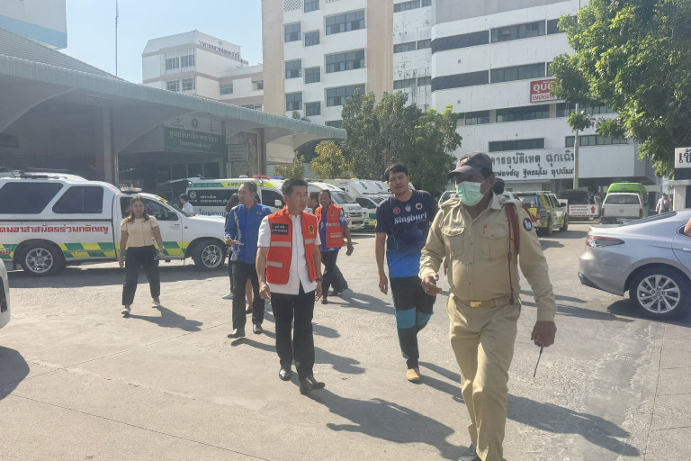 โรงพยาบาลสิงห์บุรี เคลื่อนย้ายผู้ป่วยจากตึกลงมาด้านล่าง หวั่นอ๊าฟเตอร์ช็อกซ้ำ หลังได้รับผลกระทบแผ่นดินไหวที่ประเทศเมียนมา
