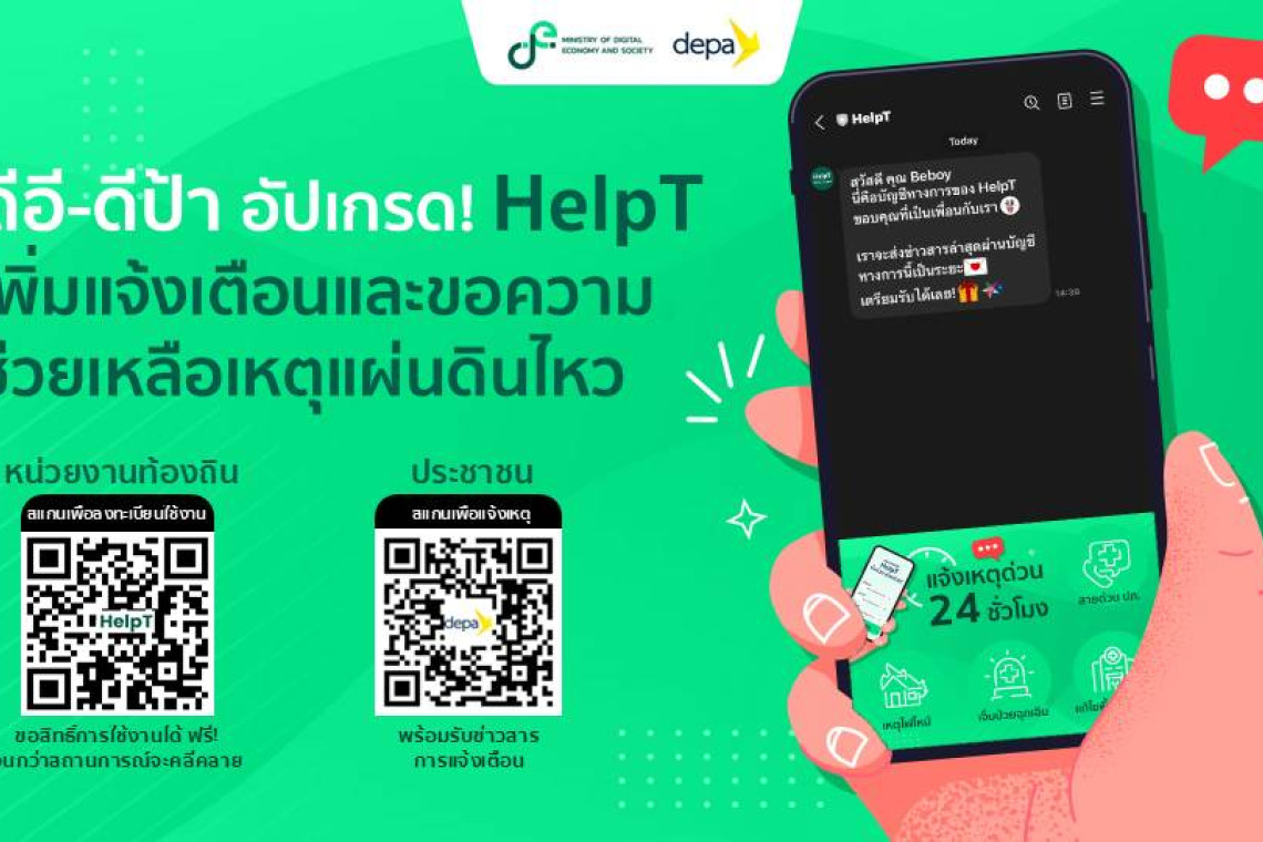 วันที่ 28 มีนาคม 2568 หลังเกิดเหตุแผ่นดินไหวในประเทศไทยวันนี้ กระทรวงดีอี-ดีป้า ได้อัปเกรด HelpT น้ำท่วม ช่วยด้วย! เพิ่มฟีเจอร์ แจ้งเตือนและขอความช่วยเหลือกรณีแผ่นดินไหว เพื่อให้ประชาชนสามารถรับข้อมูลและติดต่อหน่วยงานท้องถิ่นได้อย่างรวดเร็ว