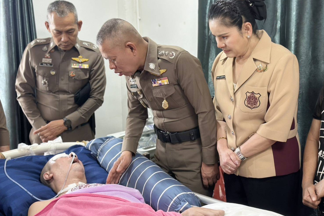 ตรวจเยี่ยม ด.ต.ยุทธพงษ์ ชิดเชื้อ ผบ.หมู่(ป.) สภ.เบญจลักษณ์ ที่ บ้านเลขที่ 107/1 ม.15 บ้านดงสูง ต.หนองหญ้าลาด อ.กันทรลักษ์ จ.ศรีสะเกษได้รับบาดเจ็บจากการปฏิบัติหน้าที่ เข้าระงับเหตุคนคุ้มคลั่ง แล้วโดนทำร้าย ล้มหัวฟาด เหตุเกิดเมื่อปี 2566 พร้อมด้วย พล.ต.ต.ลาภ ศรีสำอางค์ รอง จตร.ช่วยราชการ ภ.3 พล.ต.ต.พิษณุ วัตถุผบก.ภ.จว.ศรีสะเกษ พ.ต.อ.อนุภาพ วิศรัมวัน