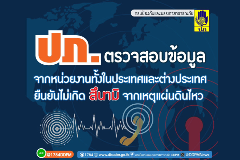 ขอให้ประชาชนติดตามสถานการณ์และข้อมูลข่าวสารจากทางราชการอย่างใกล้ชิด และหากได้รับความเดือดร้อนจากเหตุแผ่นดินไหวดังกล่าวสามารถแจ้งเหตุและขอความช่วยเหลือทางไลน์ “ปภ.รับแจ้งเหตุ1784” โดยเพิ่มเพื่อน Line ID @1784DDPM รวมถึงสายด่วนนิรภัย1784 ตลอด 24 ชั่วโมง เพื่อประสานให้การช่วยเหลือต่อไป ////////