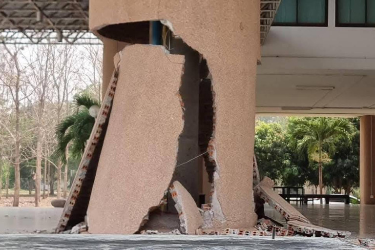ลำปาง เสาปูน ในอาคารเรียน วิทยาลัยราชมงคล เสียหายหลังแผ่นดินไหว