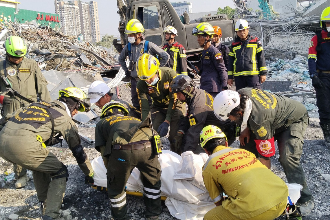 จากเหตุโครงการก่อสร้างสำนักงานการตรวจเงินแผ่นดิน (สตง.) แห่งใหม่ 30 ชั้น ถนนกำแพงเพชร 2 แขวงและเขตจตุจักร โดยเกิดเหตุถล่ม เนื่องจากผ่านดินไหว ล่าสุดเจ้าหน้าที่หลายหน่วยงาน ได้นำรถแบ๊คโฮ และรถขุดเจาะขนาดใหญ่ เข้ารื้อซากโครงสร้างอาคารหลังดังกล่าว เพื่อค้นหาผู้สูญหาย ในซากตึกอย่างต่อเนื่อง