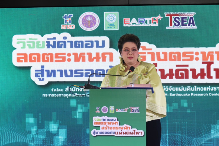 ดร.วิภารัตน์ ดีอ่อง ผู้อำนวยการ วช. กล่าวว่า การเสวนาครั้งนี้จัดขึ้นเพื่อให้ข้อมูลงานวิจัยและนวัตกรรมด้านภัยพิบัติแผ่นดินไหว และสร้างความเข้าใจแก่ประชาชน โดย วช. ได้สนับสนุนทุนวิจัยเกี่ยวกับรูปแบบการเกิดและผลกระทบจากแผ่นดินไหว การรับมือ และการเตรียมความพร้อมด้านวิศวกรรม