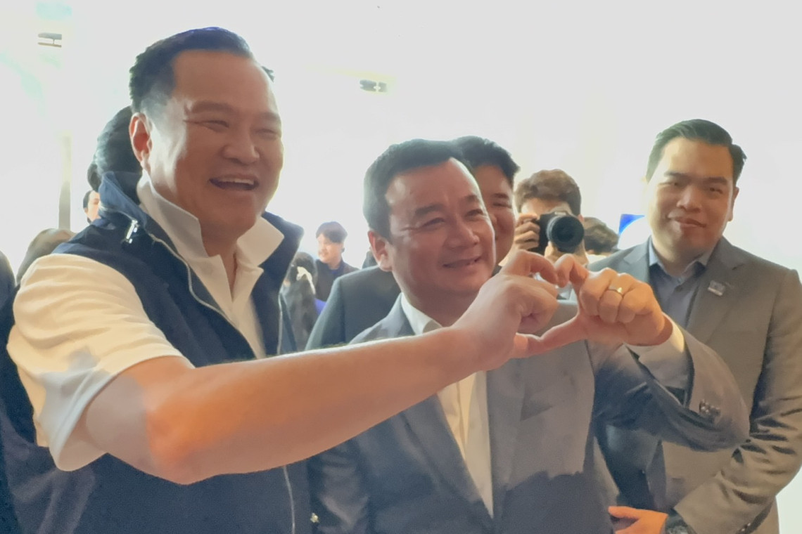 พร้อมยืนยันว่า รัฐบาลจะต้องประคองและทำงานร่วมกันไปจนครบวาระ ก่อนที่นายอนุทิน จะเดินเข้ามาร่วมวงสัมภาษณ์ และยกมือทำรูปหัวใจครึ่งหนึ่ง จากนั้้นนายสรวงศ์ จึงได้ยกมือทำรูปหัวใจอีกครึ่งหนึ่งมาประสานกัน