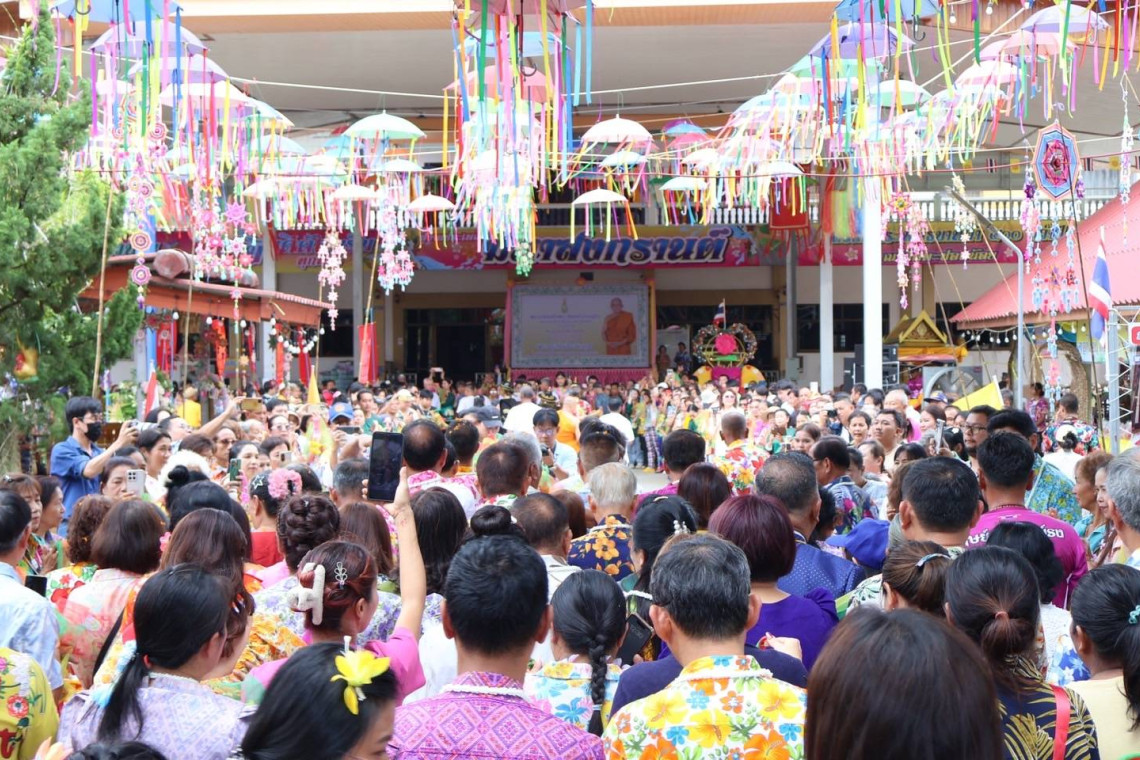 ในส่วนของกิจกรรมภายในงาน ได้มีการอัญเชิญรอยพระพุทธบาทผ้าขึ้นประดิษฐานบนเกวียนพระบาทตามขั้นตอนโบราณประเพณี จากนั้น ผู้เข้าร่วมพิธีได้ร่วมกันถวายพวงมาลัยและปิดทองบริเวณหัวตะเฆ่ของเกวียนพระบาท เพื่อความเป็นสิริมงคลแก่ตนเองและครอบครัว