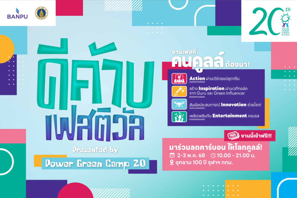 ผู้สนใจสามารถเข้าร่วมงานได้ฟรี! ระหว่างวันที่ 2-3 พฤษภาคม 2568 ตั้งแต่เวลา 10.00 – 21.00 น. ที่อุทยาน 100 ปี จุฬาลงกรณ์มหาวิทยาลัย และถ้าอยากเดินทางแบบลดคาร์บอน บ้านปูได้จัดรถตุ๊กตุ๊กไฟฟ้า 100% มูฟมี (MuvMi) รับ-ส่งฟรีระหว่างสถานีรถไฟฟ้า MRT สามย่านและอุทยาน 100 ปีจุฬาฯ ติดตามรายละเอียดกิจกรรมเพิ่มเติมได้ที่ เฟซบุ๊กเพจ https://www.facebook.com/powergreencamp