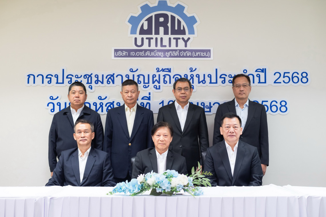 นายนนทิกร กาญจนะจิตรา ประธานกรรมการ และนายจรัญ วิวัฒน์เจษฎาวุฒิ ประธานเจ้าหน้าที่บริหาร บริษัท เจ.อาร์.ดับเบิ้ลยู. ยูทิลิตี้ จำกัด (มหาชน) (JR) พร้อมคณะกรรมการและคณะผู้บริหาร ถ่ายภาพร่วมกันหลังการประชุมสามัญผู้ถือหุ้นประจำปี 2568 โดยมีผู้ถือหุ้นเข้าร่วมประชุมเป็นจำนวนหุ้นทั้งสิ้น 81.042% ของจำนวนหุ้นทั้งหมด และผู้ถือหุ้นมีมติอนุมัติจ่ายปันผลงวดผลการดำเนินงานปี 2567 เป็นเงินสดในอัตรา 0.04 บาท/หุ้น กำหนดจ่ายวันที่ 30 เม.ย.2568 นี้ กางแผนปี 2568 รุกงาน Quick Win และ Oil & Gas ดันมาร์จิ้นเพิ่ม ชูจุดแข็งทีมงานมีความเชี่ยวชาญ-คู่แข่งในตลาดมีน้อย หนุนรายได้เติบโตต่อเนื่องและมั่นคง พร้อมโชว์ Backlog แน่น 7,646.20 ล้านบาท ทยอยรับรู้รายได้ใน 3-5 ปีข้างหน้า