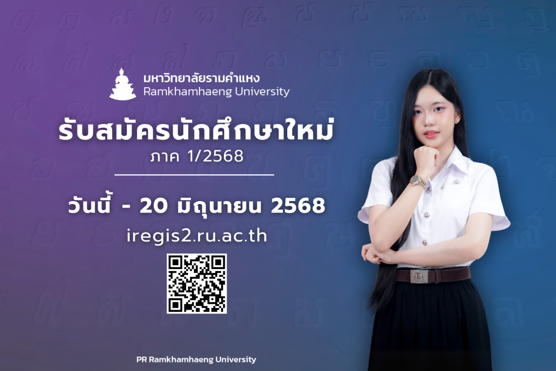 วันนี้ - 20 มิถุนายน 2568 สมัครทางอินเทอร์เน็ต ที่ https://iregis2.ru.ac.th และทางไปรษณีย์