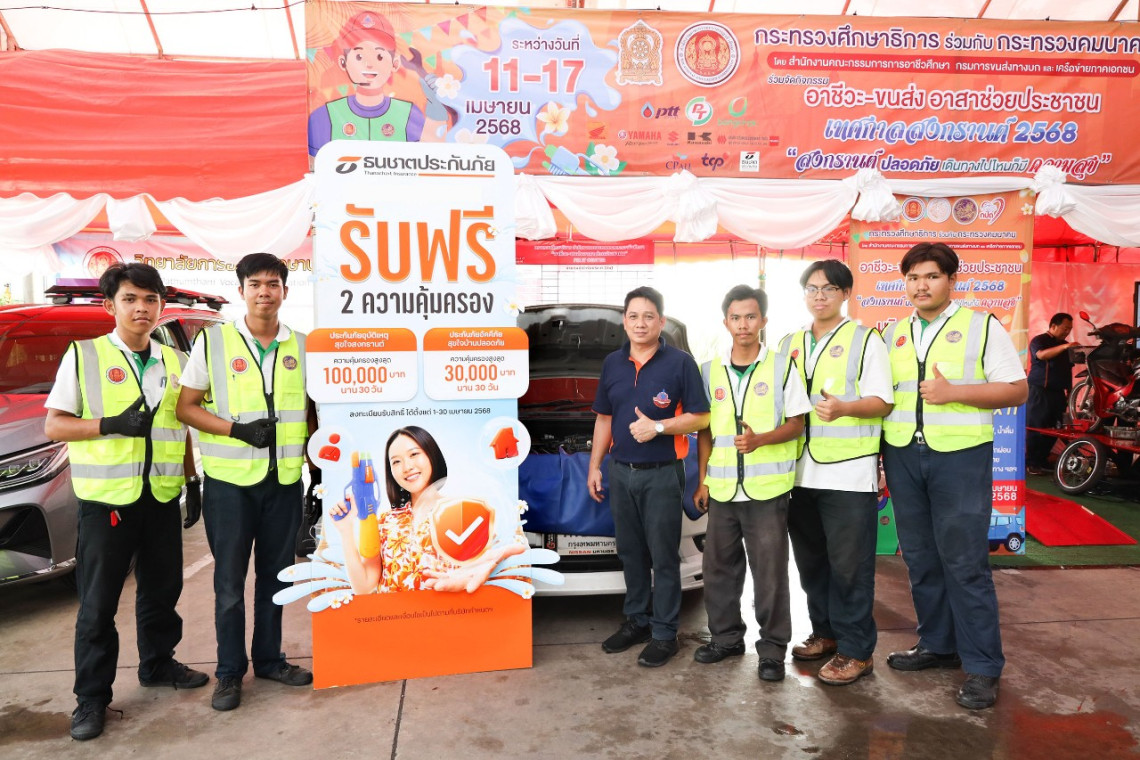 ธนชาตประกันภัย รับอาสาดูแลความปลอดภัยชีวิตและทรัพย์สินให้กับเจ้าหน้าที่ที่ปฏิบัติงานประจำจุดบริการ “อาชีวะ-ขนส่ง อาสาช่วยประชาชน เทศกาลสงกรานต์ 2568” ทั้ง 150 แห่งในกรุงเทพมหานครและ 76 จังหวัดทั่วประเทศ มอบกรมธรรม์ “ประกันภัยอุบัติเหตุสุขใจสงกรานต์” และ “ประกันภัยอัคคีภัย สุขใจบ้านปลอดภัย” เพิ่มขวัญกำลังใจให้กับจิตอาสาที่มุ่งมั่นบริการสังคม ช่วยเหลือประชาชนผู้ใช้รถใช้ถนนเดินทางอย่างปลอดภัยและอุ่นใจตลอดการเดินทางช่วงสงกรานต์