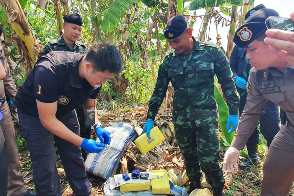 จากการตรวจสอบเบื้องต้นไม่พบสิ่งผิดกฎหมาย จึงได้ทำการตรวจสอบพื้นที่บริเวณโดยรอบ ตรวจพบยาเสพติดให้โทษประเภท 1 (ยาบ้า) จำนวน 10 กระสอบ เบื้องต้นพบเป็นยาบ้าประมาณ 2,500,000 เม็ด วางอยู่บริเวณป่ากล้วย ห่างจากจุดพบรถยนต์ ประมาณ 100 เมตร จากนั้นจึงได้แจ้งเจ้าหน้าที่ ที่เกี่ยวข้องเข้าทำการตรวจสอบของกลาง