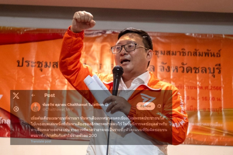 นายชัยธวัช ตุลาธน อดีตหัวหน้าพรรคก้าวไกล ผู้อำนวยการอาวุโสคณะก้าวหน้า ในฐานะผู้ช่วยหาเสียงพรรคประชาชน โพสต์ภาพลงใน x ชัยธวัช ตุลาธน Chaithawat Tulathon ว่า