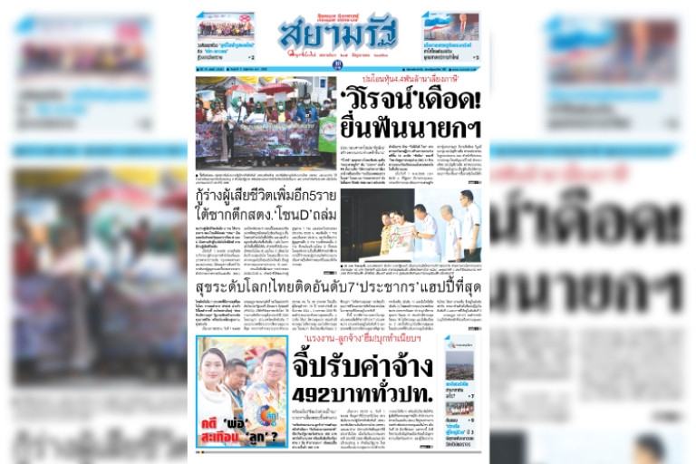 หน้า 1 หนังสือพิมพ์สยามรัฐรายวัน ฉบับวันศุกร์ที่ 2 พฤษภาคม 2568