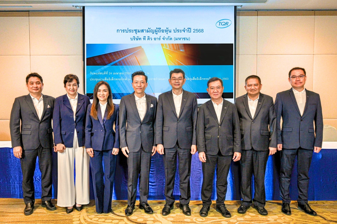 นายกฤษณะ บุญยะชัย ประธานกรรมการ, นายชนะพันธุ์ พิริยะพันธุ์ ประธานเจ้าหน้าที่บริหาร, นางยุพเรศ พิริยะพันธุ์ กรรมการและรองประธานเจ้าหน้าที่บริหาร พร้อมด้วยคณะกรรมการ บริษัท ที คิว อาร์ จำกัด (มหาชน) (TQR) เข้าร่วมการประชุมสามัญผู้ถือหุ้น ประจำปี 2568 ผ่านระบบสื่ออิเล็กทรอนิกส์ (E-AGM) โดยที่ประชุมมีมติเห็นชอบทุกวาระ และมีมติอนุมัติจ่ายเงินปันผลในอัตราหุ้นละ 0.40 บาท รวมเป็นเงิน 92 ล้านบาท โดยได้จ่ายปันผลระหว่างกาลในปี 2567 แล้ว ในอัตราหุ้นละ 0.184 บาท คิดเป็นจำนวนเงิน 42.32 ล้านบาท ดังนั้น คงเหลือที่จะจ่ายในอัตราหุ้นละ 0.216 บาท คิดเป็นจำนวนเงิน 49.68 ล้านบาท กำหนดจ่ายวันที่ 16 พฤษภาคม 2568 โดยบริษัทฯ ตั้งเป้าหมายรายได้ปีนี้เติบโต 5-10% นิวไฮต่อเนื่อง จากการร่วมมือกับบริษัทประกันภัยชั้นนำ พัฒนาประกันภัยต่อรูปแบบใหม่ ทั้ง ESG-Cyber-D&O-A&H