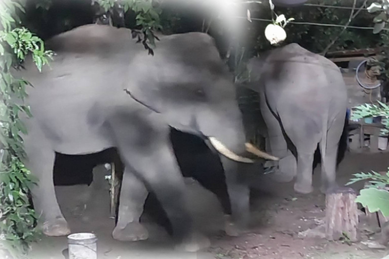 โดยชาวสวนสามารถถ่ายคลิปเหตุการณ์ขณะช้างตัวดังกล่าวเดินดุ่มๆ เข้าใกล้บ้านในสวนอย่างไม่เกรงกลัว ก่อนจะหายลับเข้าไปในแปลงทุเรียนด้านหลังบ้าน รุ่งเช้าภาพที่เห็นทำเอาเจ้าของสวนแทบทรุด เมื่อพบว่าลูกทุเรียนแก่ใกล้ตัด ถูกช้างใช้งวงดึงลงมาจากต้น ก่อนจะใช้เท้าเหยียบเละเกลื่อนพื้น เสียหายนับ 100 ลูก มูลค่าความเสียหายหลายหมื่นบาท