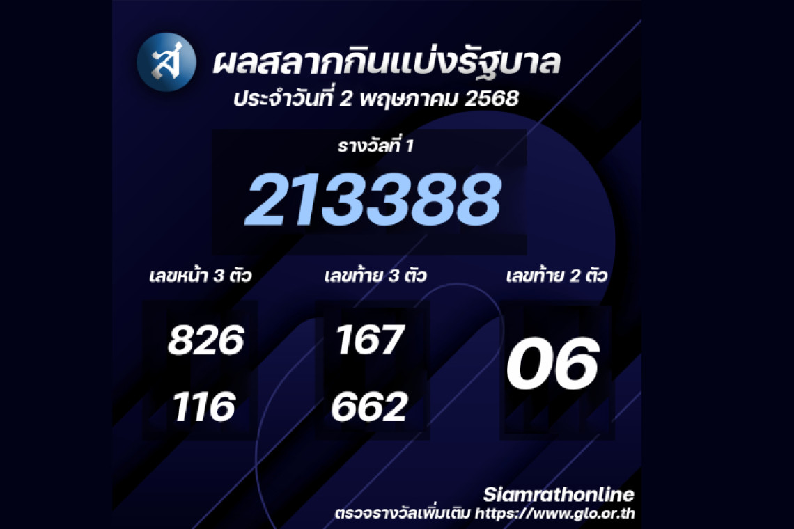 ผลสลากกินแบ่งรัฐบาลงวดประจำวันที่ 2 พฤษภาคม 2568