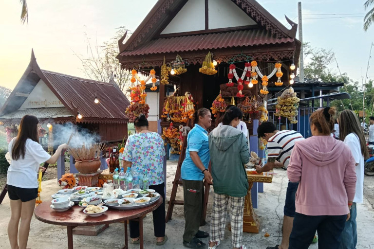 ศรัทธาชาวบ้านตำบลรำมะสัก จัด "ประเพณีทำบุญ หน้าบ้าน หลังบ้าน ศาลพ่อปู่ท่าลอบ"คอหวยแห่ส่องเลขธูป