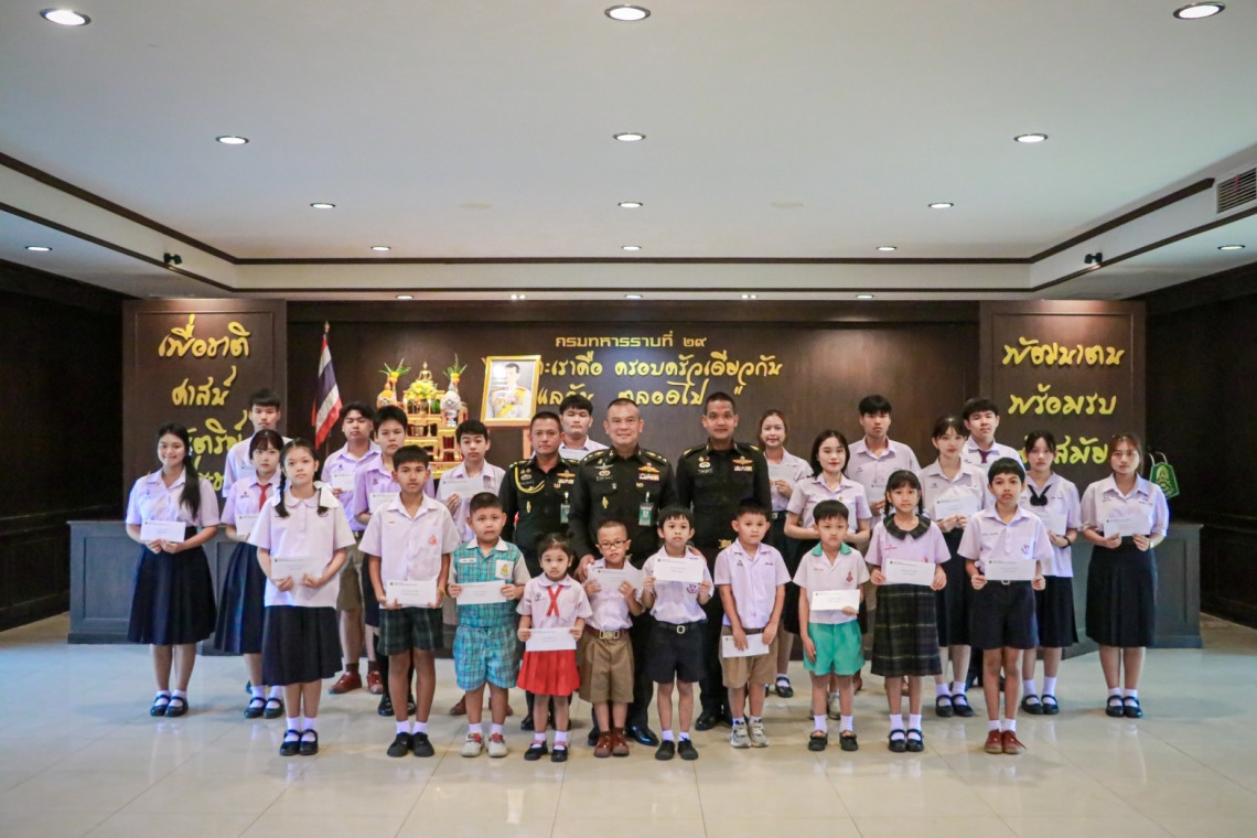 กรมทหารราบที่ 29 กกล.สุรสีห์ กาญจนบุรี จัดพิธีมอบทุนการศึกษาแก่บุตรกำลังพล เพราะเราคือ ครอบครัวเดียวกัน