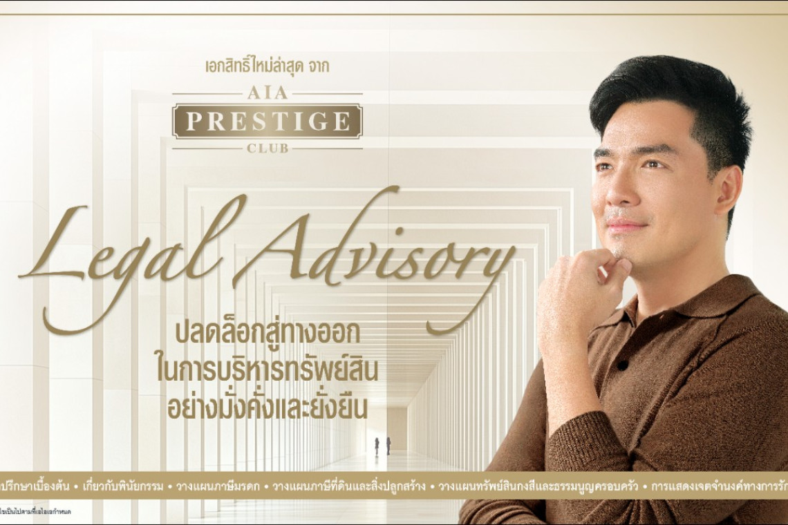 เอไอเอ เปิดตัวเอกสิทธิ์ใหม่ Legal Advisory บริการให้คำปรึกษาเบื้องต้นแก่ลูกค้า AIA Prestige Clubช่วยลูกค้าบริหารจัดการทรัพย์สินอย่างรอบด้านจากพันธมิตรเอไอเอ พร้อมถ่ายทอดเอกสิทธิ์ผ่านภาพยนตร์โฆษณาชุดใหม่ล่าสุด