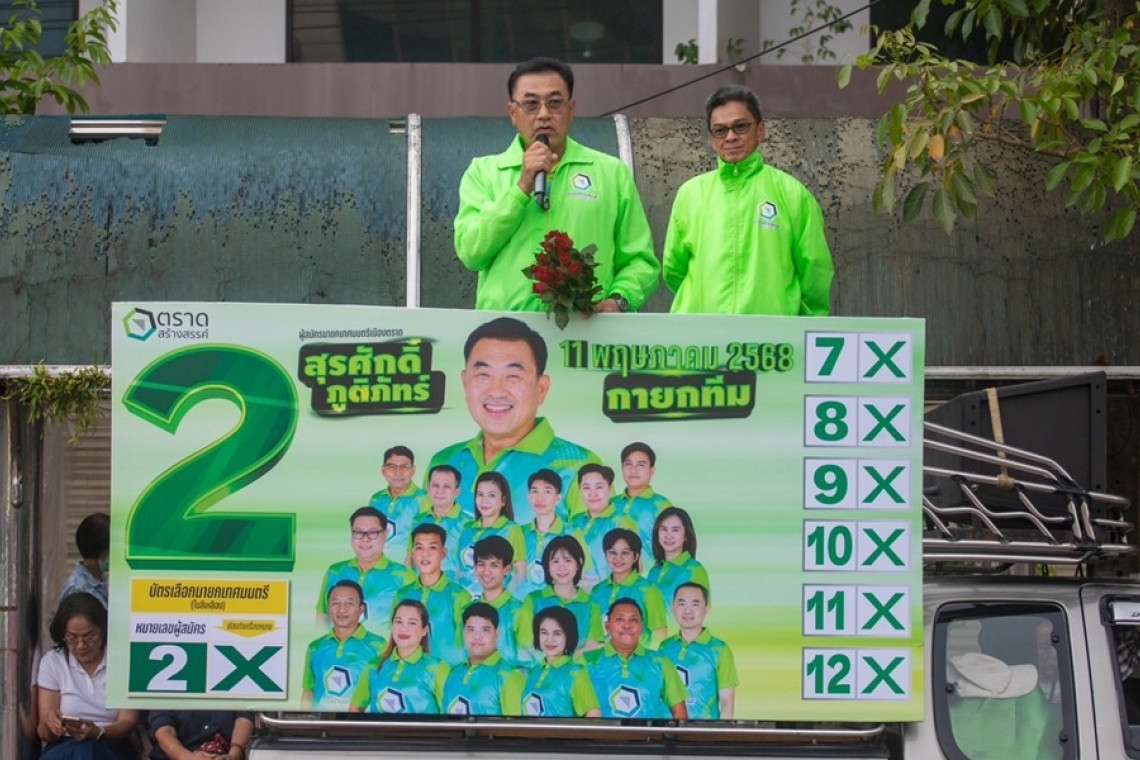 วันที่ 7 พ.ค.68 หน้าตลาดสดไร่รั้ง เทศบาลเมืองตราด นายสุรศักดิ์ ภูมิภัทร์ ผู้สมัครนายกเทศมนตรีเมืองตราด และหัวหน้าทีมตราดสร้างสรรค์ พร้อมทีมผู้สมัครสมาชิกสภาเทศบาลเมืองตราด ทั้ง 3 เขต และทีมงานหาเสียง เปิดเวทีปราศรัยครั้งแรก ในการเลือกตั้งเทศบาลเมืองตราด