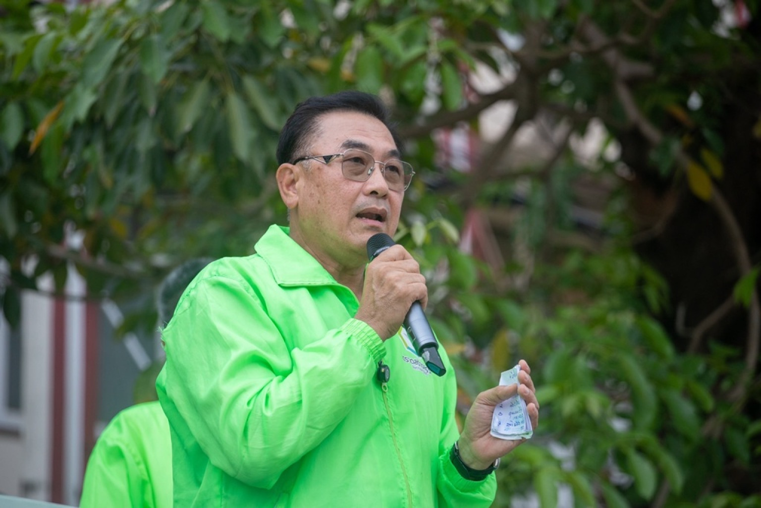 ก่อนที่นายสุรศักดิ์ จะขึ้นปราศรัย ได้ให้ผู้สมัครสมาชิกสภาทั้ง 3 เขต ขึ้นแนะนำตัว และการลงสมัคร สท. ของแต่ละคน โดยใช้เวลาประมาณ 1 ชั่วโมง ระหว่างปราศรัยมีชาวบ้านมอบดอกกุหลาบ ดอกดาวเรือง เป็นกำลังใจให้กับผู้สมัคร