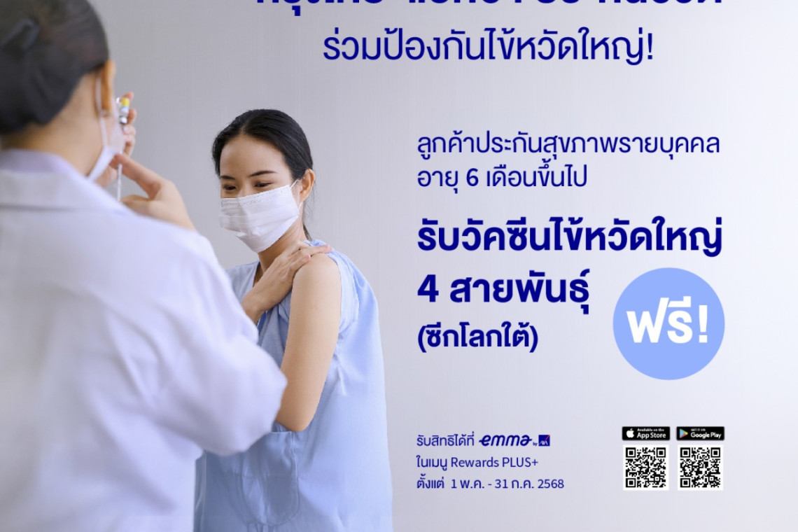 บมจ.กรุงไทย-แอกซ่า ประกันชีวิต เล็งเห็นความสำคัญในการดูแลสุขภาพเชิงป้องกัน จัดทำกิจกรรม “ร่วมป้องกันคนที่คุณรักจากโรคไข้หวัดใหญ่ ฟรีค่าวัคซีน 2568” ขึ้น โดยบริษัท ฯ ขอมอบสิทธิการเข้ารับการฉีดวัคซีนป้องกันไข้หวัดใหญ่ 4 สายพันธุ์ (ซีกโลกใต้) จำนวน 1 เข็ม ต่อผู้เอาประกันภัยที่ได้รับสิทธิ 1 ราย โดยไม่มีค่าใช้จ่ายในส่วนของค่าวัคซีน ทั้งนี้การฉีดวัคซีนป้องกันโรคไข้หวัดใหญ่ เป็นวิธีที่มีประสิทธิภาพที่สุดในการป้องกันโรคนี้ ไม่เพียงแต่จะช่วยลดโอกาสติดเชื้อ แต่ยังช่วยลดความรุนแรงของอาการ และลดความเสี่ยงจากภาวะแทรกซ้อนที่อาจเกิดขึ้นได้