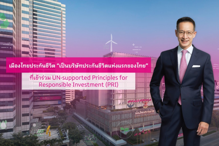 เมืองไทยประกันชีวิต เดินหน้านโยบายการสร้างความยั่งยืนในทุกมิติพร้อมประกาศเป็นบริษัทประกันชีวิตแห่งแรกของไทยที่เข้าร่วมลงนาม UN-supported Principles for Responsible Investment (PRI)