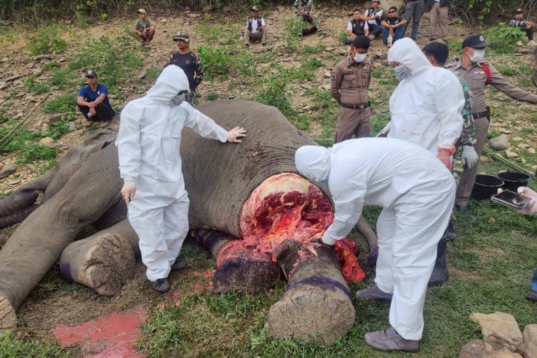 ซึ่งหลังจากเสร็จการชันสูตร ทีมเจ้าหน้าที่ได้ทำการฝังกลบซากช้างในพื้นที่ เพื่อป้องกันการแพร่กระจายของเชื้อโรคสู่สัตว์ป่าอื่นๆ พร้อมกันนี้ ได้มีการแจ้งความลงบันทึกประจำวันไว้ที่สถานีตำรวจภูธรอ่าวน้อย เพื่อดำเนินการสืบสวนหาตัวผู้กระทำผิดมาลงโทษตามกฎหมายต่อไปแล้ว
