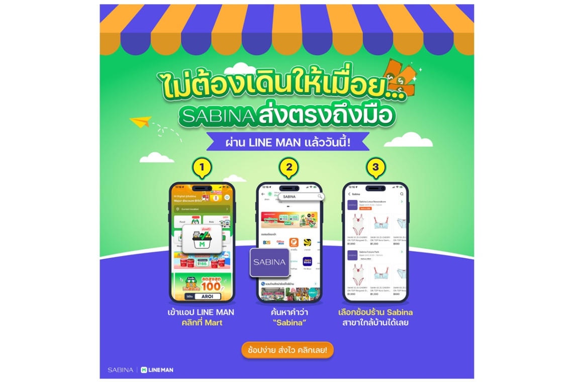 SABINA ปังไม่หยุด ล่าสุดเดินหน้าเปิดตัวบริการใหม่ “ซาบีน่า บน ไลน์แมน” (Sabina บน LINE MAN) ตอกย้ำฐานะผู้นำชุดชั้นในแบรนด์ไทยอันดับหนึ่ง ที่พร้อมยกระดับประสบการณ์ช้อปปิ้งให้กับลูกค้าแบบไร้รอยต่อ ด้วยกลยุทธ์ขยาย On-Demand Channel ที่กำลังเป็นเทรนด์ใหม่ของงานบริการในยุคดิจิทัล มั่นใจตอบโจทย์กลุ่มผู้บริโภคที่มีกำลังซื้อ แต่ไม่มีเวลา ได้อย่างตรงจุด