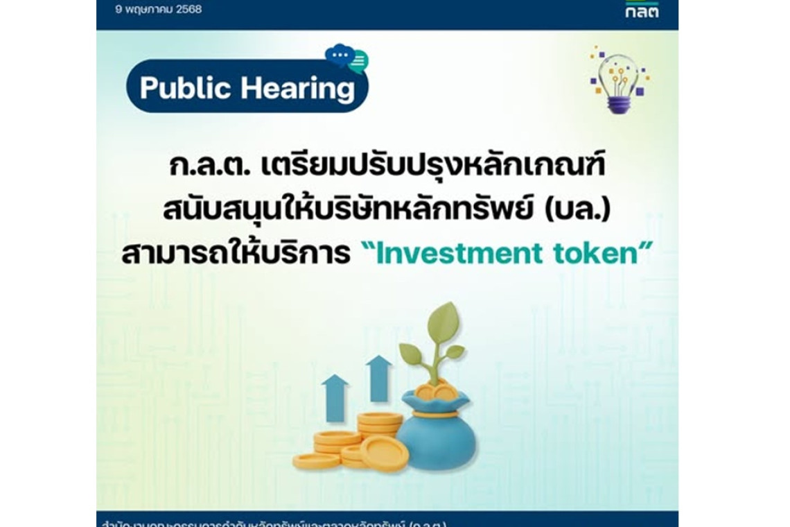ก.ล.ต.เปิดเฮียริ่งปรับปรุงหลักเกณฑ์สนับสนุนให้บริษัทหลักทรัพย์ ให้บริการ “Investment token”
