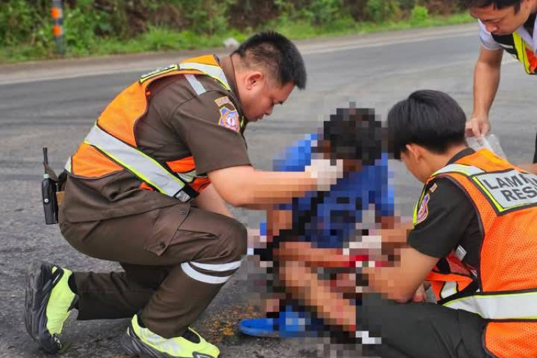 ลำปาง สยอง!! ชายวัย 38 ปี ขี่รถจักรยานยนต์ชนเก๋ง จนนิ้วและมือขาดติดคาประตูรถ กู้ภัยเร่งช่วยเหลือ