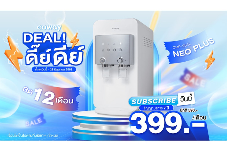 คูลกว่านี้ไม่มีอีกแล้ว! COWAY ขอมอบความสดชื่นให้ทุกบ้านแบบจัดใหญ่จัดเต็ม ด้วยโปรโมชันสุดว้าวกับเครื่องกรองน้ำ COWAY Neo Plus รุ่นยอดฮิตที่ครองใจคนรุ่นใหม่ ด้วยดีไซน์ Warm & Cozy เข้ากับทุกมุมในบ้าน พร้อมระบบกรองน้ำ Reverse Osmosis (RO) ที่ผ่านการรับรองจาก NSF ให้คุณมั่นใจได้ว่าทุกแก้วสะอาดชัวร์! ในราคาสุดคุ้มเมื่อ subscribe เครื่องกรองน้ำรุ่น COWAY Neo Plus เริ่มต้นเพียง 399 บาท/เดือน ตลอด 12 เดือนแรก และตั้งแต่เดือนที่ 13 เป็นต้นไป จ่ายเพียงเพียง 499 บาท/เดือน นาน 7 ปี คุ้มเกินคุ้ม! ตั้งแต่วันนี้ – 28 มิ.ย. 2568 เท่านั้น