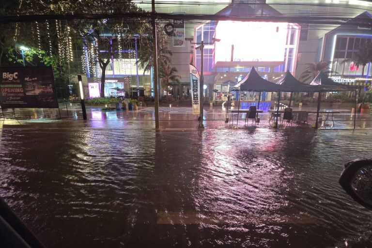 พายุฝนถล่มหัวหิน น้ำท่วมขัง-การจราจรอัมพาต เตือนประชาชนหลีกเลี่ยงเส้นทางในตัวเมือง