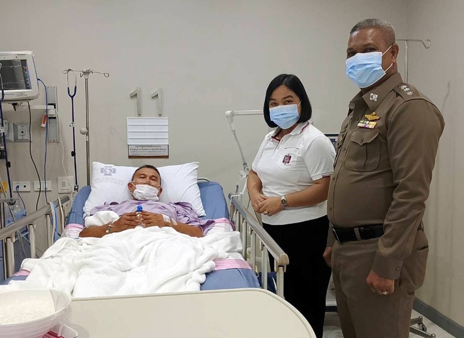วันที่ 14 พ.ค.68 ที่ รพ.เกษมราษฎร์ บางแค พ.ต.อ.ปราโมทย์ จันทร์บุญแก้ว ผกก.สน.เพชรเกษม พร้อมภริยา เข้าตรวจเยี่ยมอาการของ ร.ต.อ.ออมสิน สีดามาตย์ รอง สว.(สอบสวน) สน.เพชรเกษม ที่เกิดอาการชักเกร็ง ขณะตรวจสำนวนจนล้มจากเก้าอี้ และอาเจียนบนชั้น 2 สน.เพชรเกษม ภายหลัง พ.ต.อ.ปราโมทย์ ผกก.สน.เพชรเกษมช่วยเหลือปั๊มหัวใจยื้อชีพจร CPR ขณะเร่งนำตัวส่ง รพ.เกษมราษฎร์ บางแค จนถึงมือแพทย์ เมื่อช่วงบ่ายวันที่ 8 พ.ค.ที่ผ่านมา