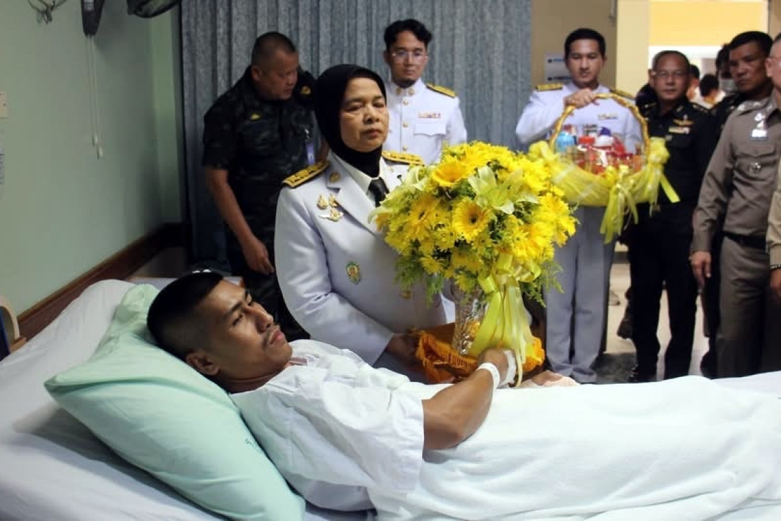 วันที่ 14 พ.ค.68 เวลา 15.30 น. พระบาทสมเด็จพระเจ้าอยู่หัว ทรงพระกรุณา โปรดเกล้าโปรดกระหม่อมให้ นางพาตีเมาะ สะดียามู ผู้ว่าราชการจังหวัดปัตตานี เชิญดอกไม้และตะกร้าสิ่งของพระราชทานของพระบาทสมเด็จพระเจ้าอยู่หัว และสมเด็จพระนางเจ้า ฯ พระบรมราชินี ไปมอบแก่ จ่าสิบเอก สำราญ ศักดา อาสาสมัครทหารพราน ทัตพงษ์ เอี่ยมสุวรรณ และนายฟุรกอน อาแว กำลังพลหน่วยเฉพาะกิจกรมทหารพราน 44 และประชาชนที่ได้รับบาดเจ็บจากเหตุกลุ่มผู้ก่อเหตุรุนแรงลอบจุดระเบิดแสวงเครื่อง ขณะที่เดินทางไปรับกำลังพลที่จบการฝึกหลักสูตรทบทวนตรวจสอบและประเมินผลชุดปฏิบัติการทหารพราน รุ่นที่ 1 ณ กองร้อยฝึกรบพิเศษ ที่ 4 อำเภอสิชล จังหวัดนครศรีธรรมราช เหตุเกิดระหว่างเดินทางบนทางหลวงหมายเลข 42 บริเวณบ้านราวอ หมู่ที่ 4 ตำบลกระหวะ อำเภอมายอ จังหวัดปัตตานี เมื่อวันที่ 13 พฤษภาคม 2568 และเข้ารับการรักษาพยาบาล ณ โรงพยาบาลปัตตานี อำเภอเมืองปัตตานี จังหวัดปัตตานี