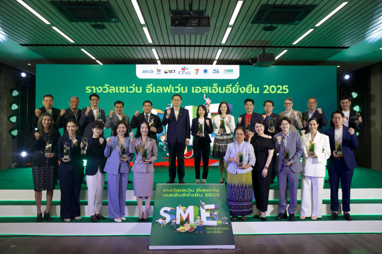 “เซเว่น อีเลฟเว่น” ผนึก 3 พันธมิตรระดับประเทศ “กสอ.-สสว.-ตลาดหลักทรัพย์ฯ” จัดงานมอบรางวัล “เซเว่น อีเลฟเว่น เอสเอ็มอียั่งยืน 2025” อย่างยิ่งใหญ่ต่อเนื่องปีที่ 8 ตอกย้ำความสำเร็จเหล่าผู้ประกอบการ SME ไทย 18 ราย จาก 10 ประเภทรางวัล ที่มุ่งยกระดับสินค้าในหลากหลายมิติทั้งเศรษฐกิจ สังคม และสิ่งแวดล้อมอย่างยั่งยืน เผยกลุ่ม SME อาหารไทยมาแรง น้ำพริกป้าแว่น-น้ำพริกมินิรุ่งเจริญ-น้ำพริกเอมโอชา กอดคอคว้ารางวัลยั่งยืน-รางวัลดาวรุ่ง พร้อมดึง “ซีเค เจิง” จัด Special Talk ติดอาวุธความรู้ SME ไทย ปั้นสินค้าสู่ตลาดโลก