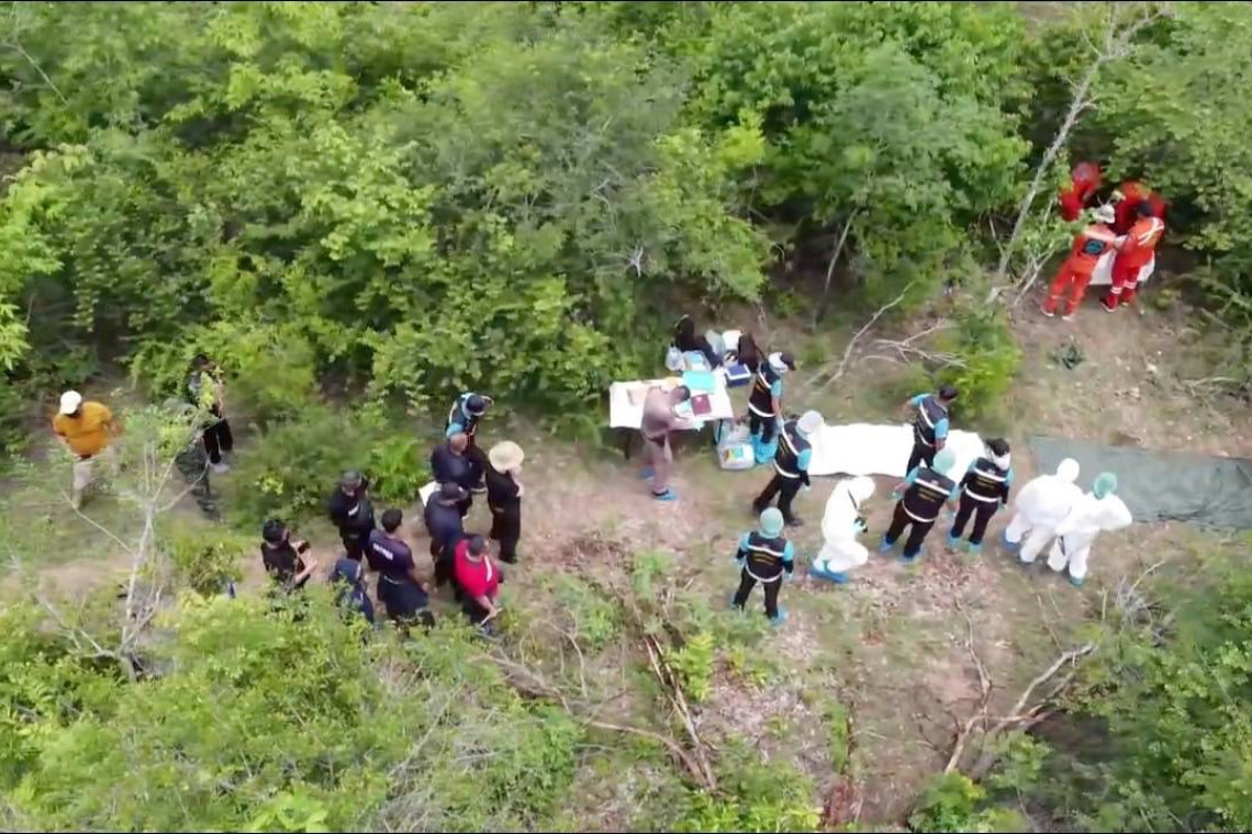 วันที่ 18 พ.ค.68 เวลา 10.00 น. ผู้สื่อข่าวรายงานว่าพล.ต.ท.นัยวัฒน์ ผะเดิมชิต ผู้บัญชาการตำรวจภูธร ภาค 7 พร้อมด้วย พล.ต.ต.พรชัย ชลอเดช ผบก.ภ.จว.กาญจนบุรี พ.ต.อ.มานะ สำราญวงษ์ ผกก.สส.ภ.จว.กาญจนบุรีพ.ต.อ.เตชินทร์ บรรจง ผกก.สภ.ลาดหญ้า ร่วมกับเจ้าหน้าที่พิสูจน์หลักฐานสำนักงานตำรวจภูธรจังหวัดกาญจนบุรี ร่วมกับตำรวจชุดสืบสวน และ พ.ต.ท.มณีภัทร์ เพ็งเกร็ด สารวัตรเวร สภ.ลาดหญ้า ร่วมกับเจ้าหน้าที่อาสาสมัครมูลนิธิพิทักษ์กาญจน์ ได้เดินทางเข้าไปตรวจสอบจุดที่ได้รับแจ้งจากชาวบ้านว่า ได้กลิ่นเหม็นเน่าซากศพอยู่ที่กลางป่าในพื้นที่หมู่ที่ 3 บ้านทุ่งนานางหรอก ตำบลลาดหญ้า อำเภอเมือง จังหวัดกาญจนบุรี