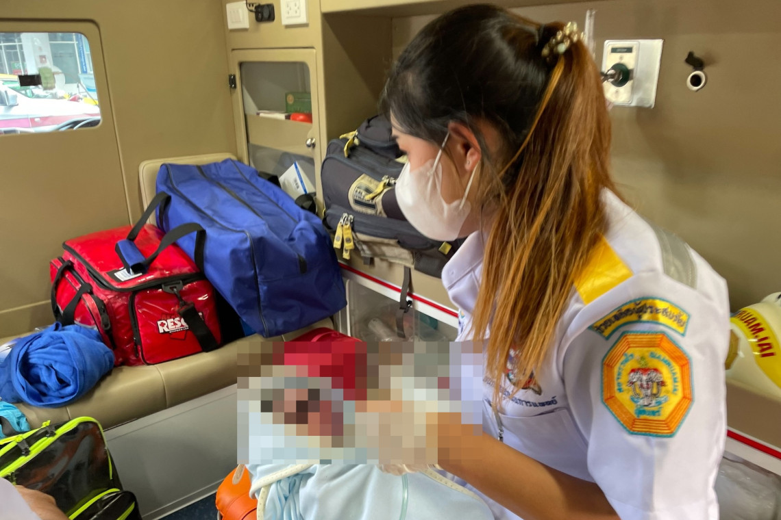 ก่อนที่กู้ภัยจะมาถึง ทางคุณป้าที่เป็นพยาบาลก็เข้าไปช่วยปฐมพยาบาลเด็กซึ่งพบว่ายังมีชีวิตอยู่เป็นเด็กเพศชาย และปลอดภัยดี ก่อนมอบให้เจ้าหน้าที่ศูนย์เอราวัณ นำส่งโรงพยาบาลเพื่อให้แพทย์ทำการตรวจรักษา