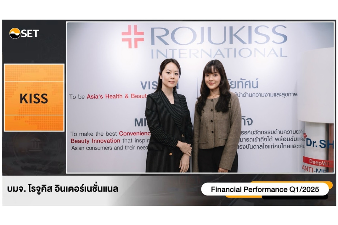 นางสาวนันทิกา แซ่เจียง (ซ้าย) ประธานเจ้าหน้าที่สายงานบัญชีและการเงิน พร้อมด้วยนางสาวปรียาภรณ์ อ้นบุตร (ขวา) นักลงทุนสัมพันธ์ บริษัท โรจูคิส อินเตอร์เนชั่นแนล จำกัด (มหาชน) “KISS” ร่วมนำเสนอข้อมูลบริษัทฯ และผลการดำเนินงานไตรมาส 1/2568 ในงานบริษัทจดทะเบียนพบผู้ลงทุน (Opportunity Day) จัดโดยตลาดหลักทรัพย์แห่งประเทศไทย โดยบริษัทโชว์ผลการดำเนินงานในไตรมาสแรกของปี 2568 บริษัทฯ มีรายได้อยู่ที่ 245 ล้านบาท เพิ่มขึ้น 15% และมีกำไรสุทธิอยู่ที่ 36 ล้านบาท เพิ่มขึ้น 12% จากช่วงเดียวกันปีก่อนจากการเติบโตของกลุ่มผลิตภัณฑ์ความงาม (Beauty Care) โดยเป็นการเติบโตจากทุกช่องทาง บริษัทฯ ยังคงรักษาโมเมนตัมการเติบโตที่แข็งแกร่งในปี 2568