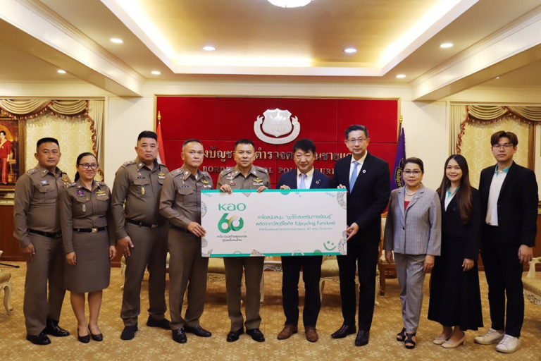 นายอากิระ นิชิมากิ ประธานกรรมการ บริษัท คาโอ อินดัสเตรียล (ประเทศไทย) จำกัด พร้อมพันธมิตรในพื้นที่ ส่งมอบ “ชุดโต๊ะส่งเสริมการเรียนรู้” ผลิตจากวัสดุรีไซเคิล ให้กับกองบัญชาการตำรวจตระเวนชายแดน โดยมี พล.ต.ต.กัญชล อินทราราม รองผู้บัญชาการตำรวจตระเวนชายแดน เป็นผู้รับมอบ ณ อาคารจุลละพราหมณ์ สำนักงานตำรวจแห่งชาติ