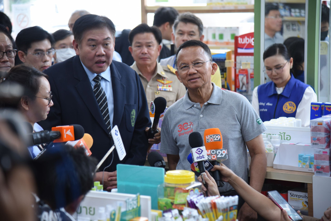 วันที่ 19 พฤษภาคม 2568 นายสมศักดิ์ เทพสุทิน รัฐมนตรีว่าการกระทรวงสาธารณสุข พร้อมด้วย นายเกียรติศักดิ์ ตรงศิริ ผู้ว่าราชการจังหวัดนนทบุรี นายแพทย์จเด็จ ธรรมธัชอารี เลขาธิการสำนักงานหลักประกันสุขภาพแห่งชาติ นายกิตติกร โล่ห์สุนทร เลขานุการรัฐมนตรีว่าการกระทรวงสาธารณสุข นายวิชัย ไชยมงคล ที่ปรึกษารัฐมนตรีว่าการกระทรวงสาธารณสุข เภสัชกรปรีชา พันธุ์ติเวช นายกสภาเภสัชกรรม และผู้บริหารกระทรวงสาธารณสุข ได้ลงพื้นที่ตรวจเยี่ยมร้านยา ดรักเฮ้าส์ โครงการสุโขทัยอเวนิว 99 ตำบลบางพูด อำเภอปากเกร็ด จังหวัดนนทบุรี โดยนายสมศักดิ์ ได้ตรวจเยี่ยมร้านยา ซึ่งเข้าร่วมโครงการ 30 บาทรักษาทุกที่ ด้วย ร้านยาคุณภาพ โดยได้รับฟังบรรยายสรุป การขับเคลื่อนร้านยาคุณภาพว่า หลังเริ่มดำเนินโครงการมา 2 ปี มีร้านยา เข้าร่วมโครงการ 3,053 ร้าน มีประชาชนมาใช้บริการสะสม 8.7 ล้านครั้ง ซึ่งจะช่วยลดความแออัดในโรงพยาบาล เพราะร้านยาคุณภาพ สามารถจ่ายยาโดยเภสัชกร ใน 32 กลุ่มอาการ ซึ่งสามารถรับยาได้ทันที ไม่ต้องไปโรงพยาบาล