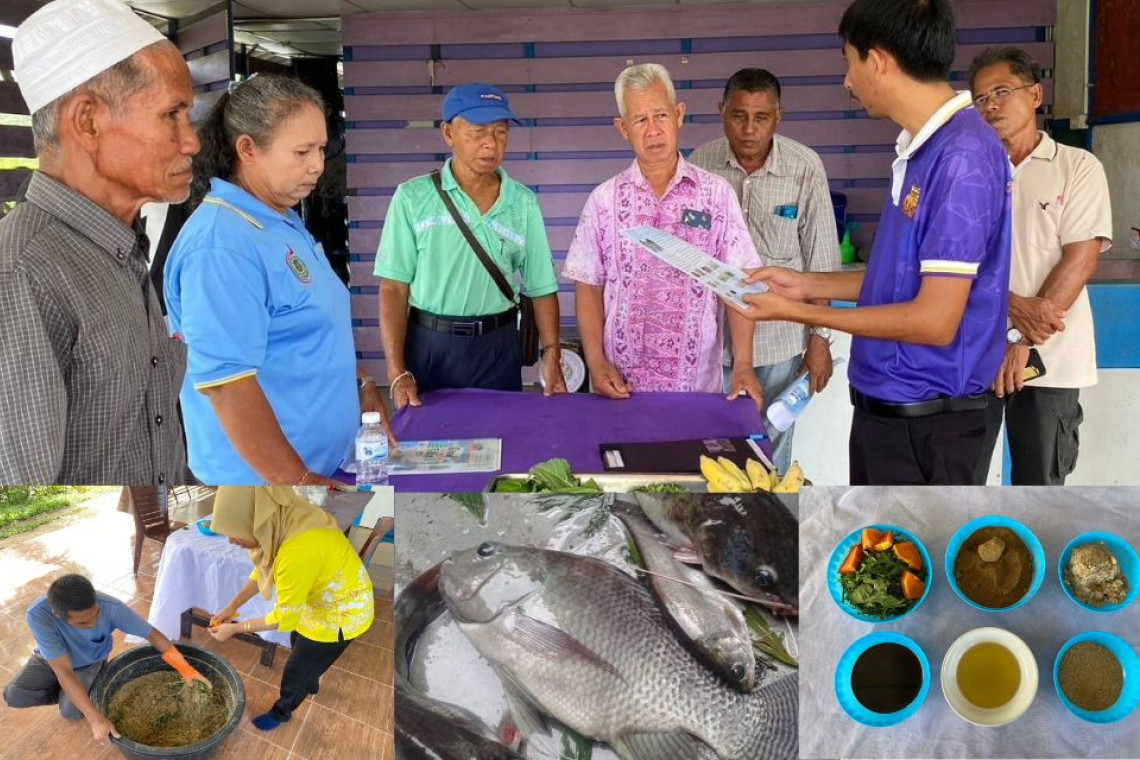 ถ่ายทอดความรู้สู่เกษตรกร หลังจากทำการผลิตอาหารปลาทั้ง 2 วิธีแล้ว เจ้าหน้าที่งานประมง ก็ได้นำความรู้เกี่ยวกับการผลิตอาหารปลาแบบลดต้นทุนไปถ่ายทอดองค์ความรู้ให้แก่เกษตรกรภายใต้โครงการส่งเสริมการเลี้ยงปลาในบ่อดินเปรี้ยวที่ปรับปรุงแล้ว จำนวน 60 ราย เช่น บ้านพิกุลทอง บ้านเปล หมู่บ้านปศุสัตว์-เกษตรมูโนะ บ้านปีแนมูดอ บ้านโคกอิฐ-โคกใน บ้านกำแพง โดยในโครงการฯ ได้มีการฝึกอบรมพร้อมสาธิตขั้นตอนการผลิตอาหารปลาซึ่งเกษตรกรสามารถนำความรู้กลับไปปฏิบัติในพื้นที่ของตนเองได้ และที่สำคัญ คือหลักการเลี้ยงปลาต้องมีการเตรียมบ่อ การจัดการคุณภาพน้ำ และการให้อาหารเสริมที่เหมาะสม ซึ่งเป็นปัจจัยสำคัญที่ส่งผลต่อการเจริญเติบโตและสุขภาพของปลา ควรศึกษาข้อมูลเพิ่มเติมเกี่ยวกับชนิดของปลาที่เลี้ยงเพื่อให้การเลี้ยงปลาประสบความสำเร็จและคุ้มค่ามากที่สุด
